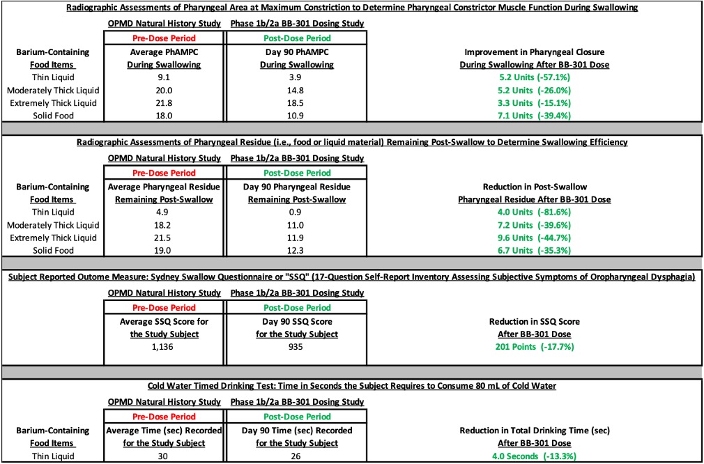 The key milestones related to the development of BB-301 for the treatment of OPMD-related Dysphagia, along with other corporate updates, are outlined below: