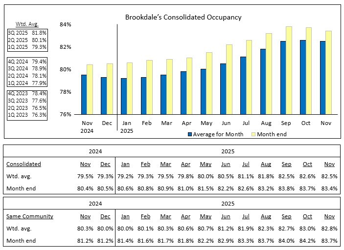 NASHVILLE, Tenn., Dec. 8, 2025 /PRNewswire/ -- Brookdale Senior Living Inc. (NYSE: BKD) reported today its consolidated occupancy for November 2025.