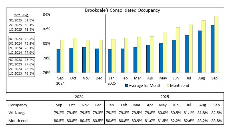 NASHVILLE, Tenn., Oct. 8, 2025 /PRNewswire/ -- Brookdale Senior Living Inc. (NYSE: BKD) reported today its consolidated occupancy for September 2025.
